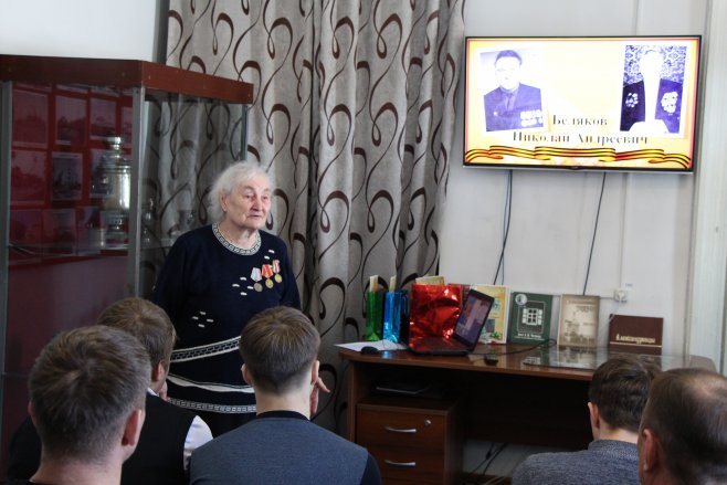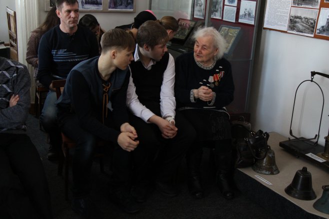 Гостями мероприятия стали представители разных поколений защитников Отечества, служившие в рядах армии в разные годы.Плохотнюк С.В. проходил службу по служебной командировке в системе МВД в Северно-Кавказском регионе. Завгородний В.В., проходивший срочную службу в г. Герате. Рассказом гостей еще раз было подчеркнуто то, что поколение второй половины 20 века проходившее службу в «горячих точках» достойно героизма дедов и прадедов, победивших фашизм в годы Великой Отечественной войне. Данный факт подтвердила и Белякова Р.А. вдова участника 3-х войнБелякова Н.А. В этот день Римма Александровна поделилась воспоминаниями о трудных и суровых военных временах, а в завершении прочла стихотворение собственного сочинения.