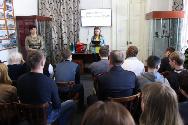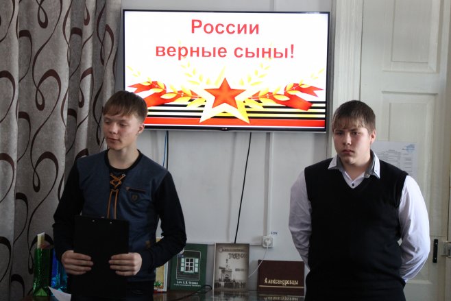 В историческом отделе нашего музея прошел вечер-встреча «России верные сыны», на которую были приглашены учащиеся 9 класса СОШ №6. Главной задачей мероприятия было донести до подрастающего поколения их непосредственную причастность к судьбе Отечества, его прошлому, настоящему и будущему.