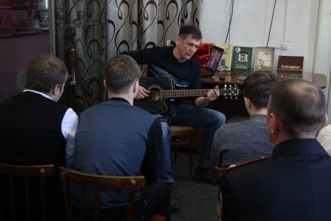 В ходе встречи ребята читали стихи, а Александр Баркин исполнил песни под гитару.