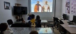 На базе рабочей станции информационно-образовательного центра «Русский музей: виртуальный филиал» для ребят, занимающихся в Центре детского творчества г.Невельска, было проведено образовательное занятие «Родники славянской культуры». Видеолекция «Кирилл и Мефодий - создатели славянской письменности» познакомила ребят с историей возникновения славянского алфавита (кириллицей) и биографией братьев Кирилла и Мефодия, интересными фактами их жизни, деятельности, подвижничестве, ведь они были первыми переводчиками богослужебных книг с греческого языка на старославянский. Для участников мероприятия также была подготовлена виртуальная выставка «Образы святых Кирилла и Мефодия в искусстве».Затем, в ходе презентации «Дорога к письменности», детям рассказали о создании русского алфавита и письменности и о последующей эволюции русского языка, а также как, чем и на чём писали люди в разное время. В заключение мероприятия участники, используя первый славянский алфавит - глаголицу, на «состаренном папирусе» упражнялись писать текст гусиным пером и чернилами.